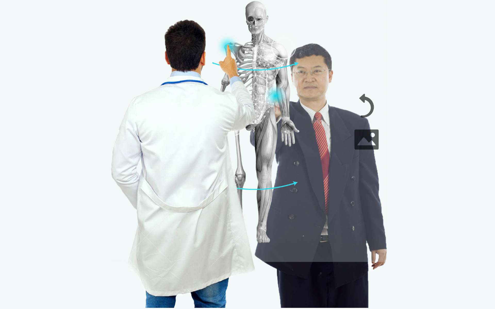 The projection displays minimalist styles with a highly detailed model of the human body for accurate diagnosis. The clear glass facilitates the feeling of a ‘two-way’ communication.