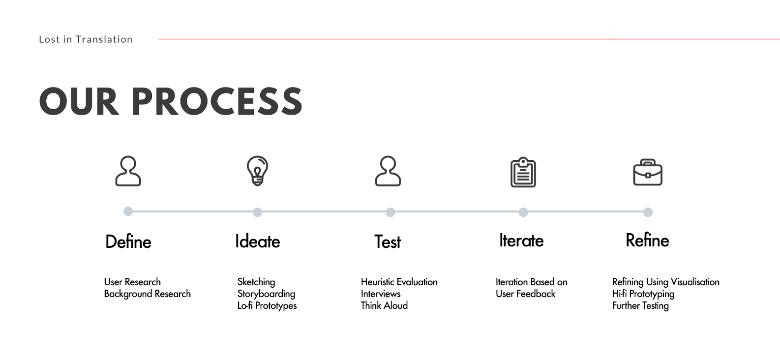 Members of our design team stepped into the shoes of the character. Innovatively due to the ‘language barrier’ of our design problem, we acted such scenarios out with our body. We generated ideas and unexpected insights through physical interaction and roleplaying.