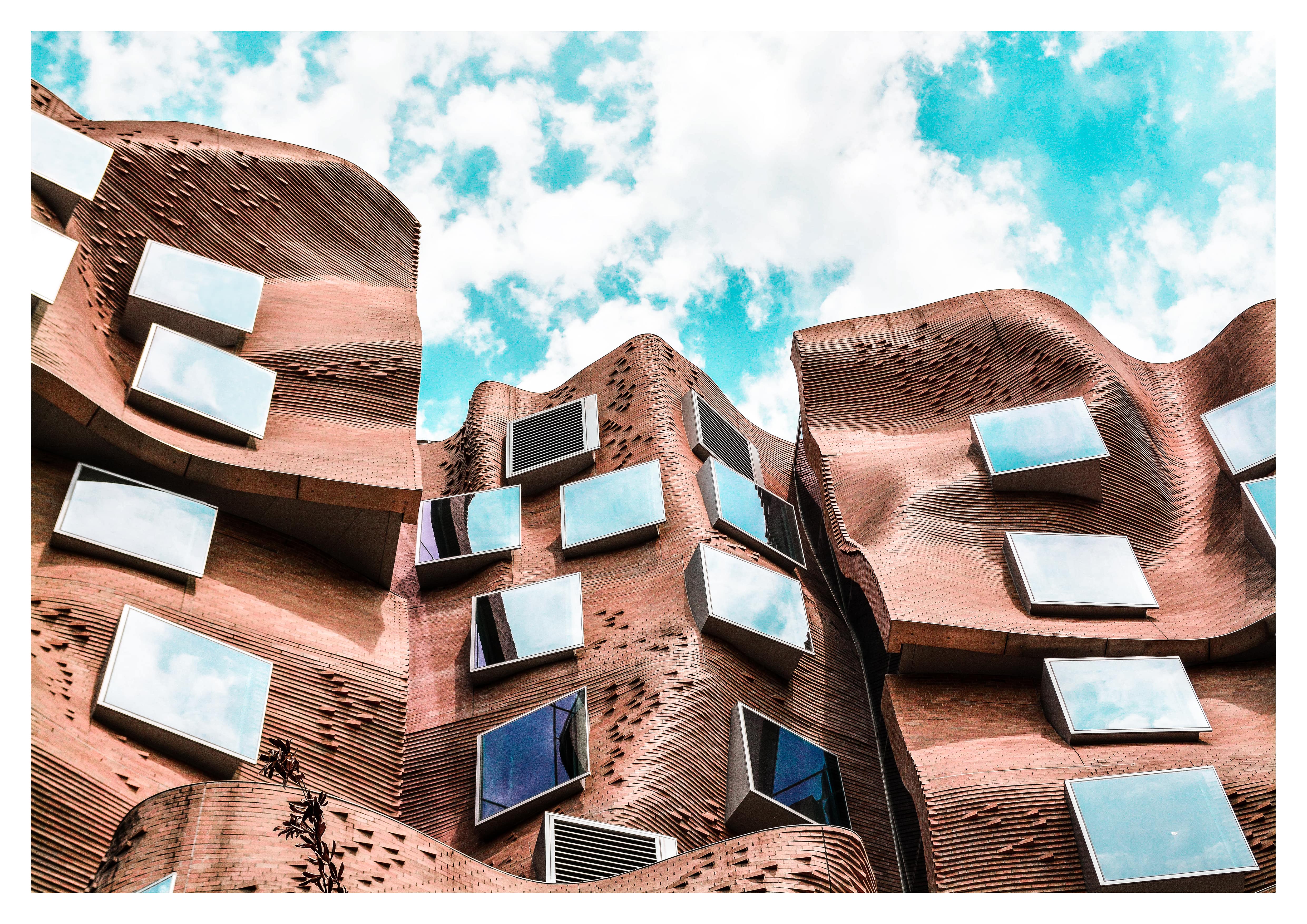 the building at different angles seems to capture different dimensions of