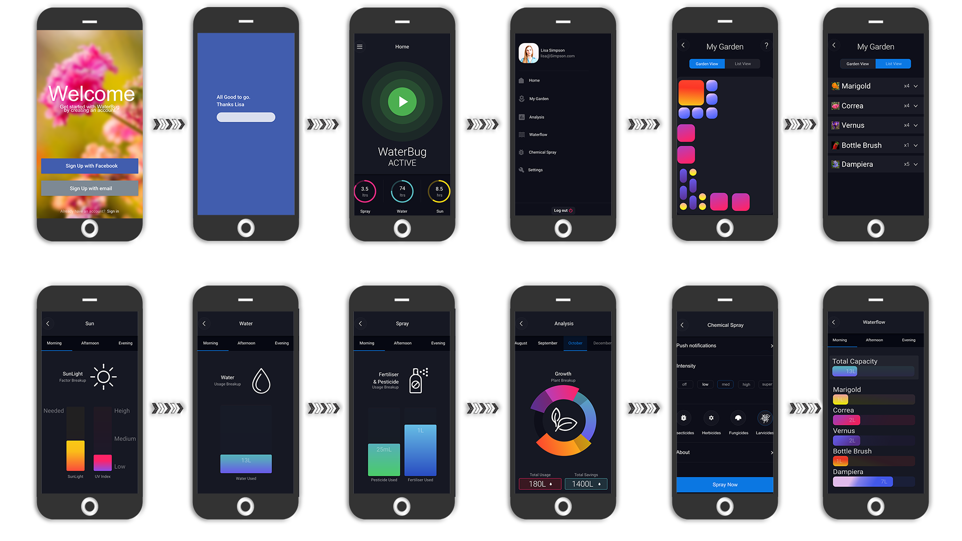 With WaterBug, you can curate, customise and visualise your garden. It allows to view availability of plant resources such as sunlight, water, chemicals and fertilisers. It is simple to get started. It waters your plants, sprays pesticides, fertilisers, provides In-depth plant analytics and history.